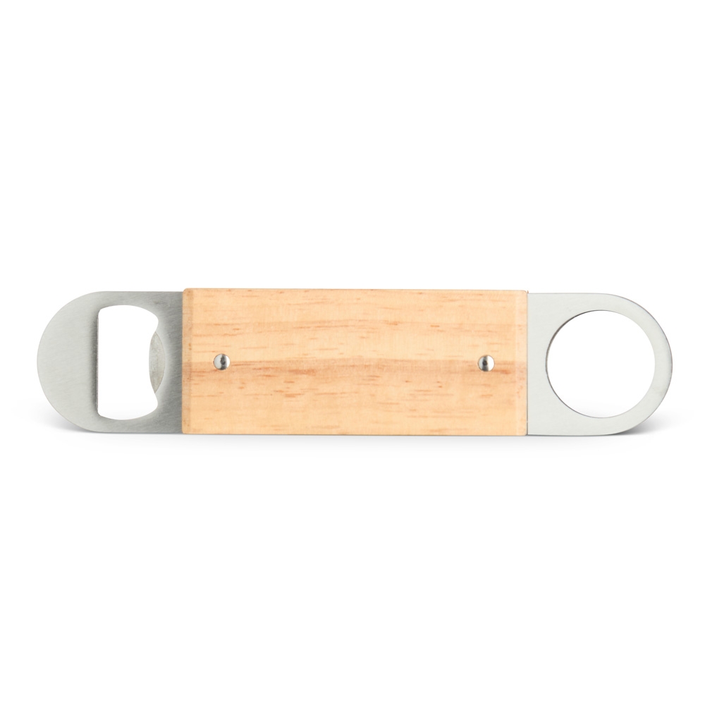 Descrição: Abridor de garrafa com cabo de madeira e argolas em aço inox resistente.