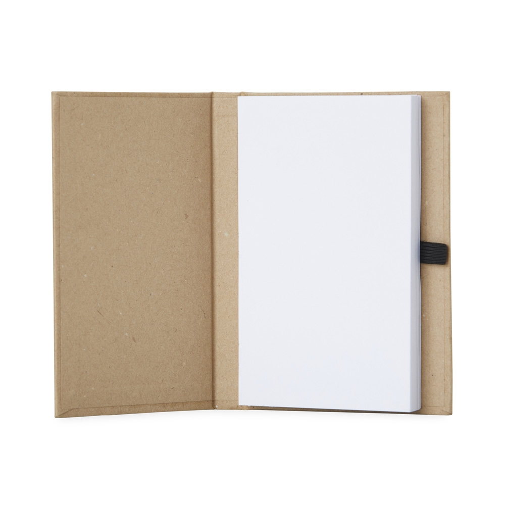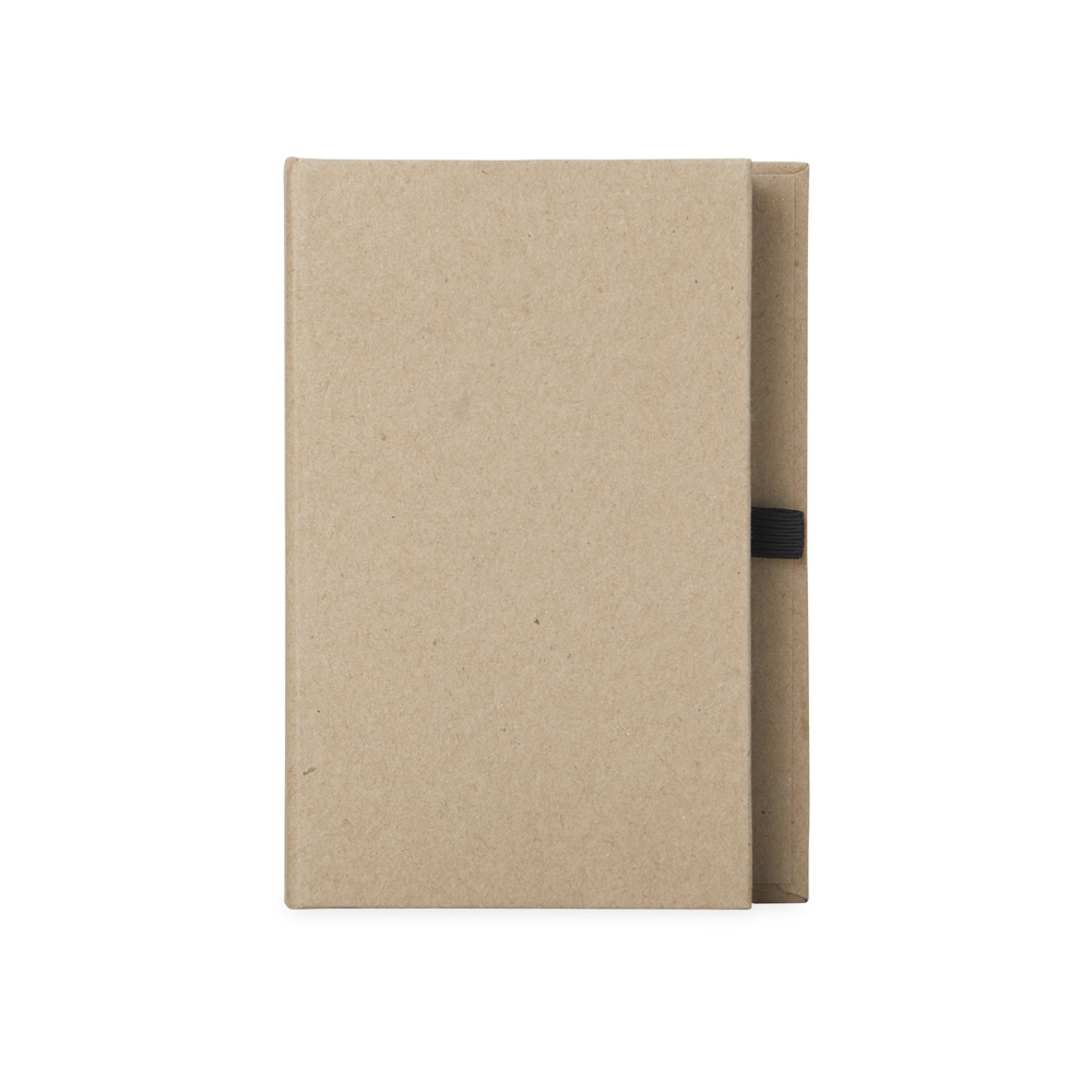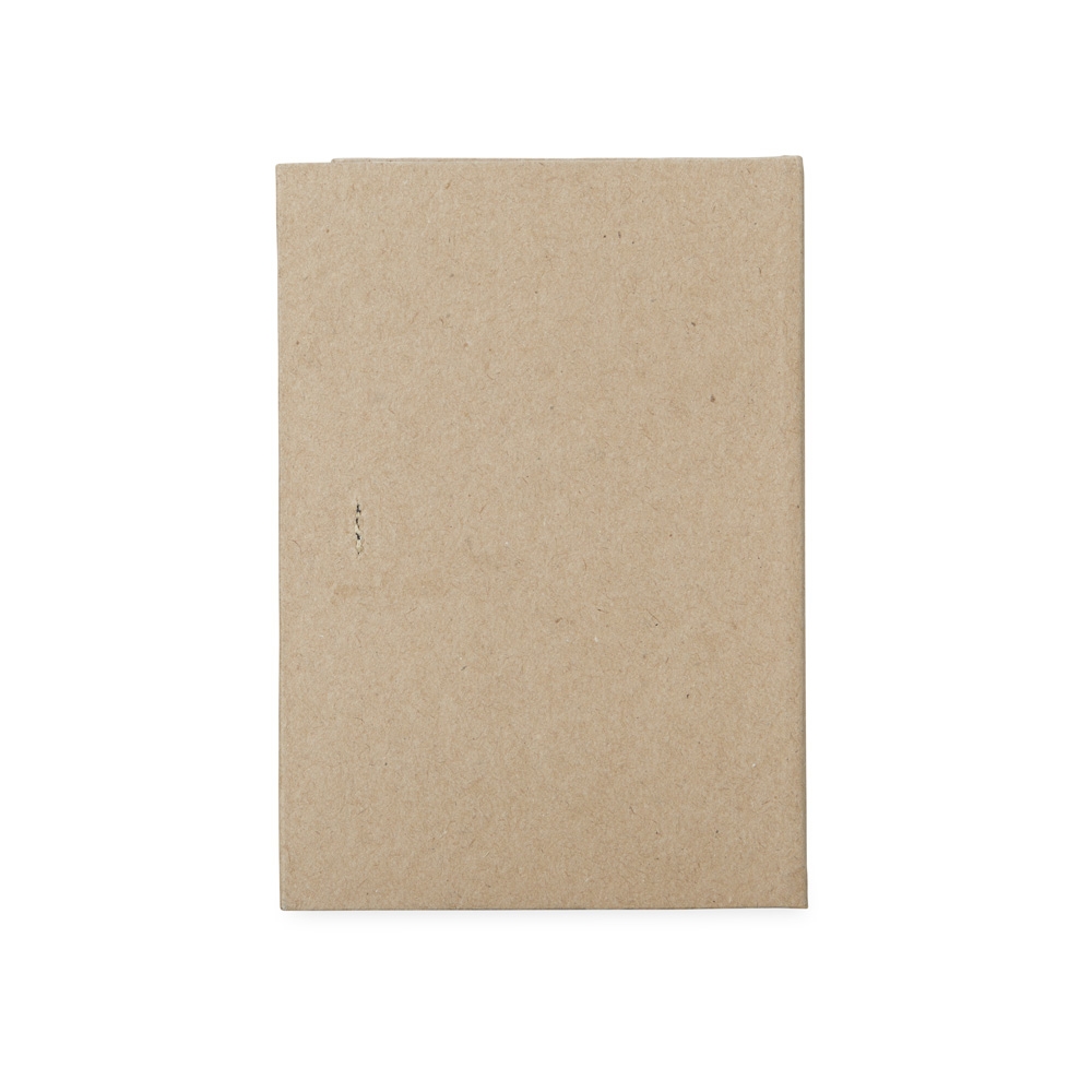 Descrição: Bloco de anotações capa dura em kraft com porta caneta. Contém aproximadamente 100 páginas não pautadas na cor branca.