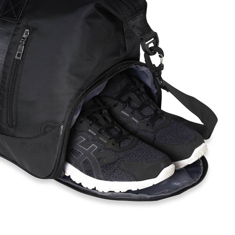 Descrição: Bolsa esportiva de 29 litros em poliéster à prova dágua com quatro compartimentos, sendo dois deles exclusivos para tênis e itens molhados. Contém bolso para encaixe em malas de viagem, bolso interno e acompanha alça transversal.