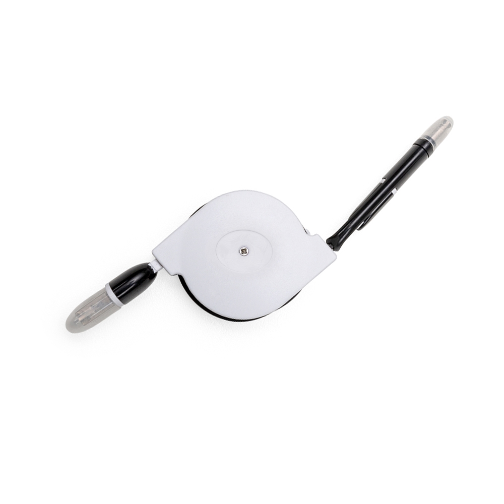 Descrição: Cabo de dados USB retrátil com as entradas Lightning/iPhone, V8/Android e Tipo-C/Android. Suporte com rolamento e trava automática. Suporte com frente lisa e parte traseira com área para aplicação de adesivo ou etiqueta resinada.