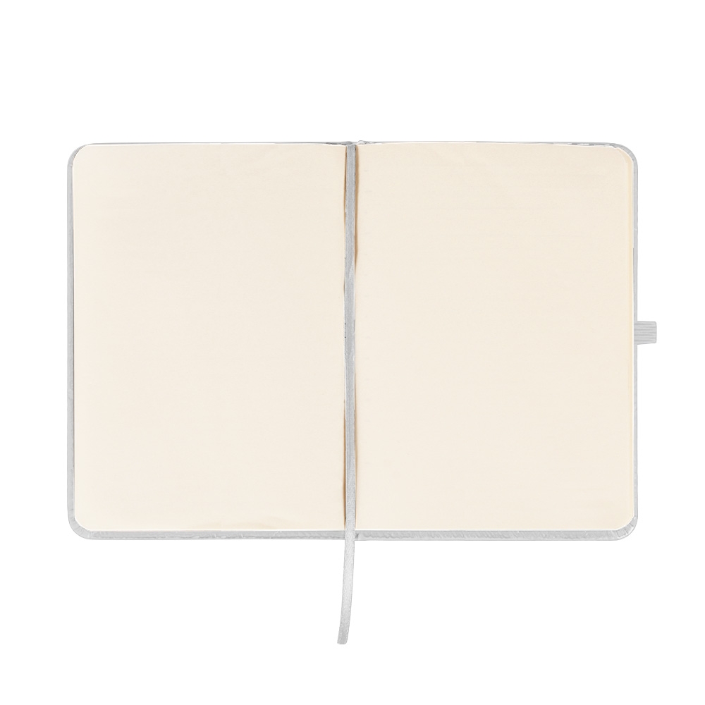 Descrição: Caderneta emborrachada com elástico para lacre, marcador de página em cetim e porta caneta, contém aproximadamente 84 folhas marfim sem pauta.