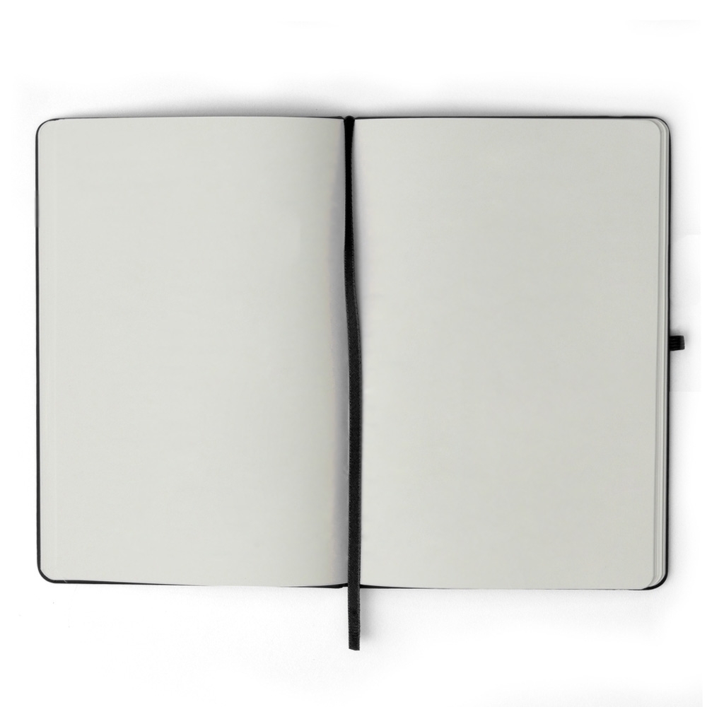 Descrição: Caderneta emborrachada com porta caneta elástico em nylon, marcador de página em cetim e fita elástica de nylon para fechar. Contém aproximadamente 80 folhas pardas sem pauta.