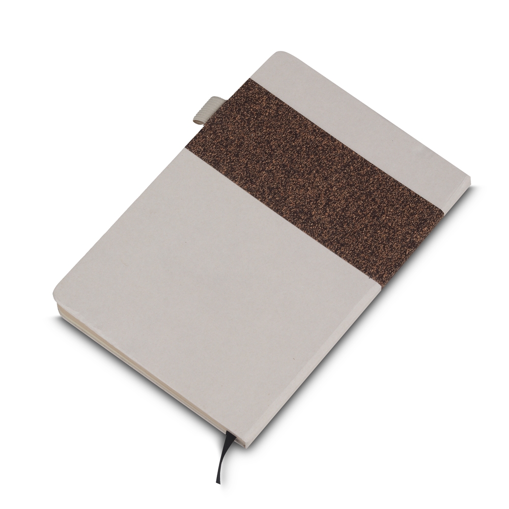 Descrição: A caderneta para anotações é perfeita para quem busca funcionalidade com um toque natural e moderno. A capa, com detalhes em fibras de açúcar, café e PU, confere um estilo único e sofisticado. Suas 80 folhas pautadas em bege proporcionam uma escrita suave e organizada, ideal para registrar ideias, compromissos e listas. Com suporte para caneta, é o companheiro prático para levar no trabalho, estudos ou onde a inspiração chamar.