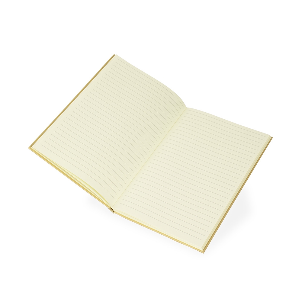 Descrição: Caderneta de capa dura em papel kraft com acabamento liso na frente e no verso. Contém aproximadamente 60 folhas amareladas com pauta e duas folhas de guarda.