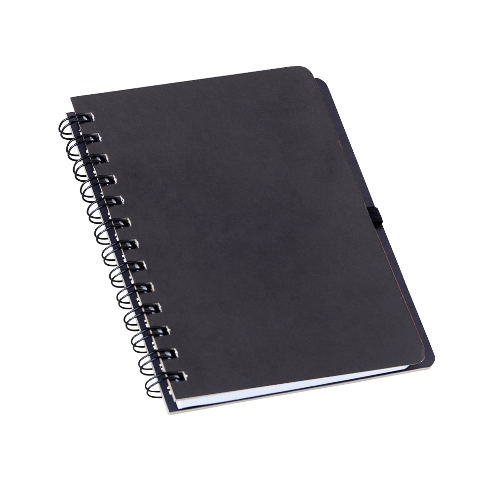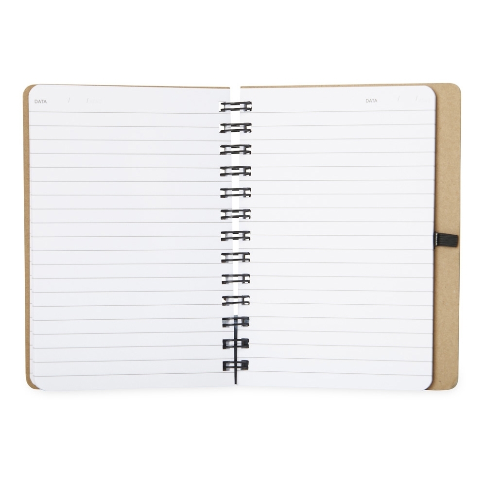 Descrição: Caderno capa dura em kraft com wire-o e porta caneta. Contém aproximadamente 100 páginas pautadas na cor branca.