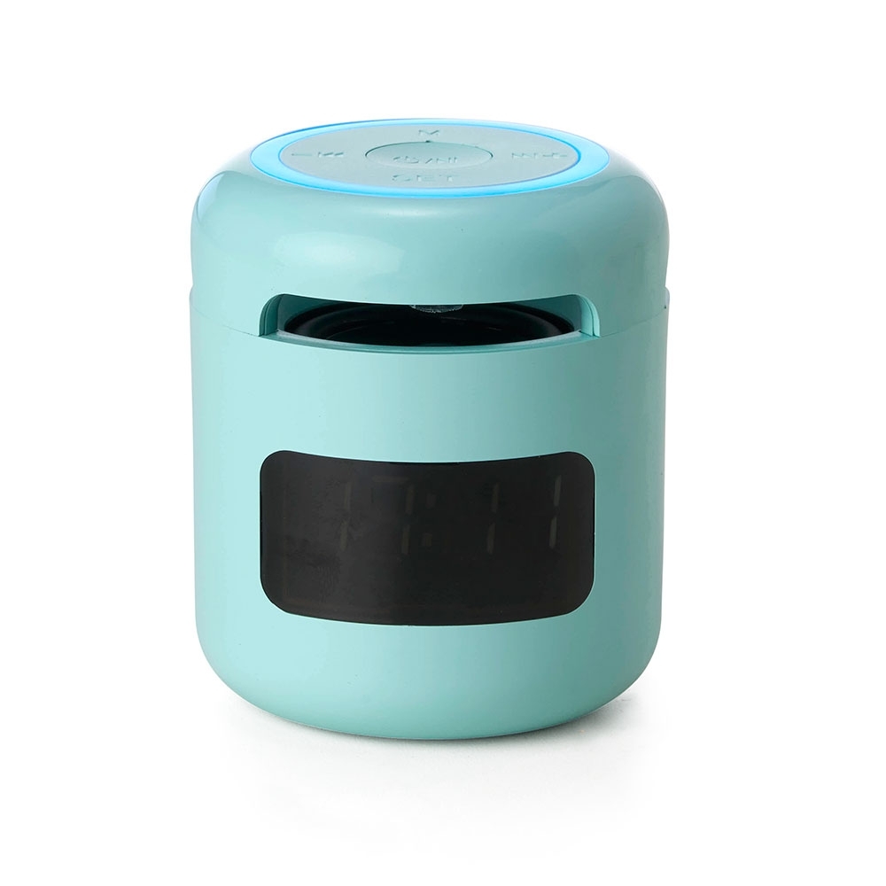 Descrição: Caixa de som multimidia com estrutura em plástico, display frontal em LED e base emborrachada antiderrapante. Possui conexão Bluetooth 5.0 e entradas para cabo auxiliar P2 e cartão TF (microSD), que permitem a reprodução de arquivos MP3, além de função para sintonia de rádio FM e programação de até três alarmes diferentes. Acompanha cabo USB-C.