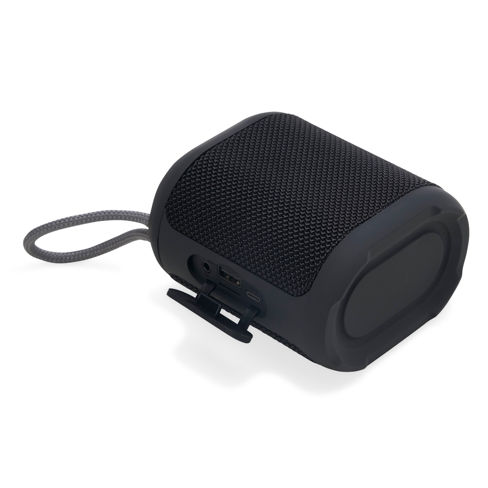 Descrição: Caixa de som multimídia. Material plástico resistente a água, e falantes com acabamento em tecido, possui um cordão de nylon acoplado para facilitar o transporte. A caixinha funciona nos modos Bluetooth, Radio FM, Cartão TF (Micro SD), Auxiliar e USB. Possui bateria de longa duração, com autonomia de aproximadamente 35 horas continuas de reprodução. É possível emparelhar 2 caixinhas do mesmo modelo e executar o som sincronizado em ambas. Acompanha cabo USB e cabo auxiliar P2
