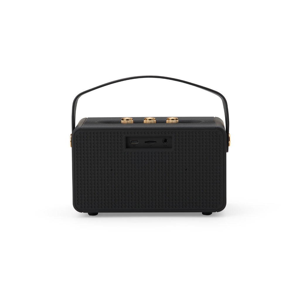 Descrição: Design retrô e potência sonora! Caixa de som multimídia com tecnologia TWS. Feita em plástico resistente com classificação IPX4, esta caixa de som oferece conectividade bluetooth, rádio FM, suporte para cartão TF (MicroSD) e pen drive. Equipada com a tecnologia TWS para sincronização de duas caixas em uma, prepare-se para uma experiência sonora imersiva e potente. Com alça para transporte e pés antideslizantes, seu design versátil facilita o transporte e a transforma também em uma charmosa peça decorativa.
