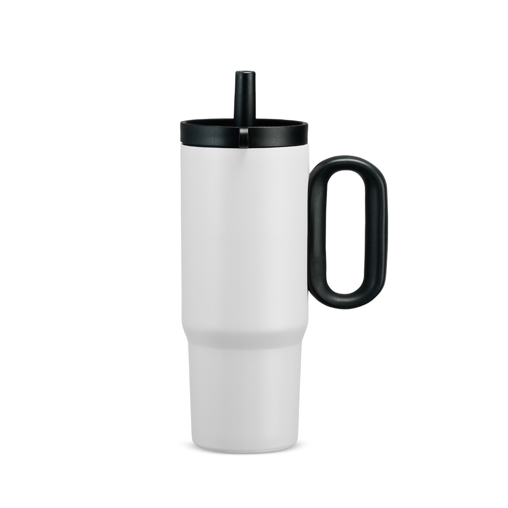 Descrição: Caneca térmica em inox 304 com pintura eletrostática, alça lateral em plástico e capacidade de até 750ml. Conta com estrutura de parede dupla e vedação a vácuo para manter a temperatura de líquidos por mais tempo. Possui tampa plástica rosqueável com acesso para canudo, infusor removível e alça para fixação de chaveiro ou gancho. Acompanha canudo plástico para encaixe.