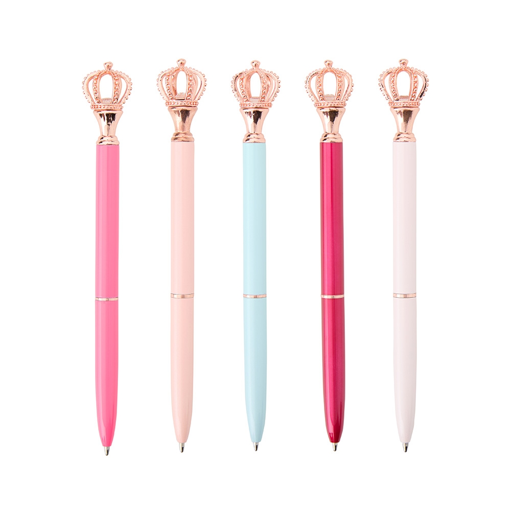 Descrição: Rei ou Rainha da escrita? A nossa caneta metálica com acionamento por rotação, conta com uma coroa como detalhe decorativo no topo, agregando sofisticação e nobreza ao seu design. Possui ponta de 1.0 mm e carga esferográfica azul.