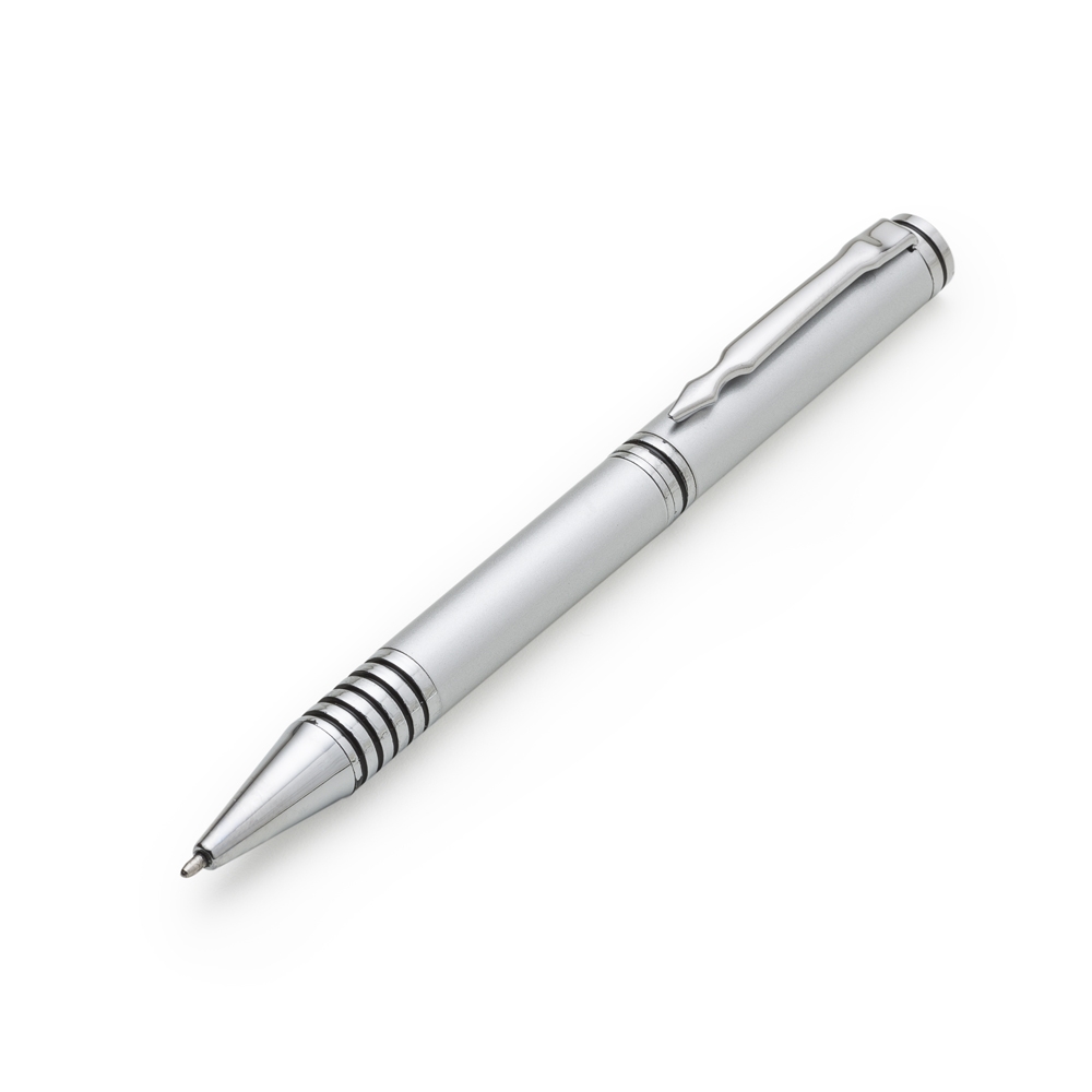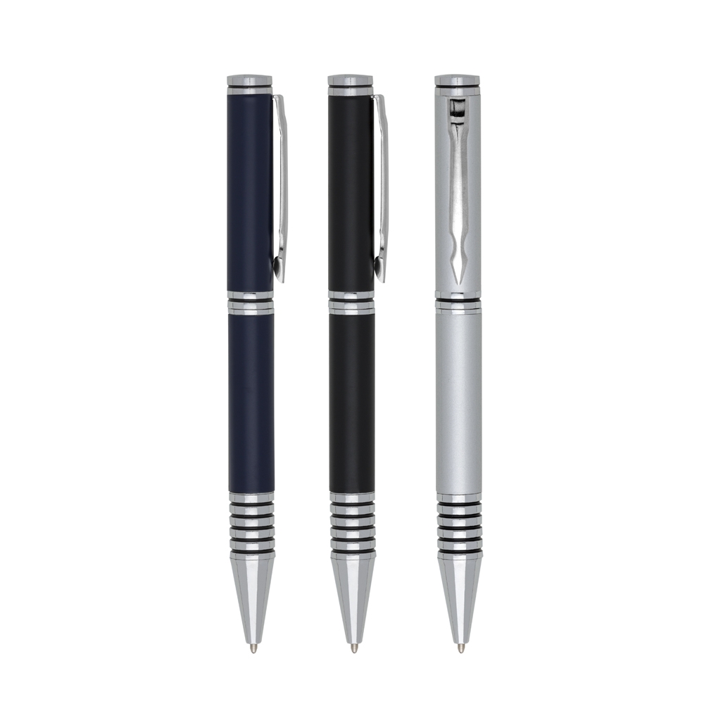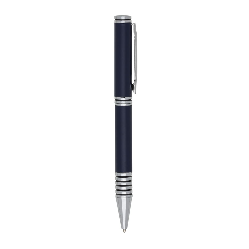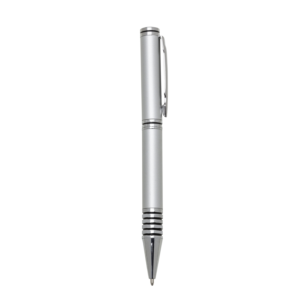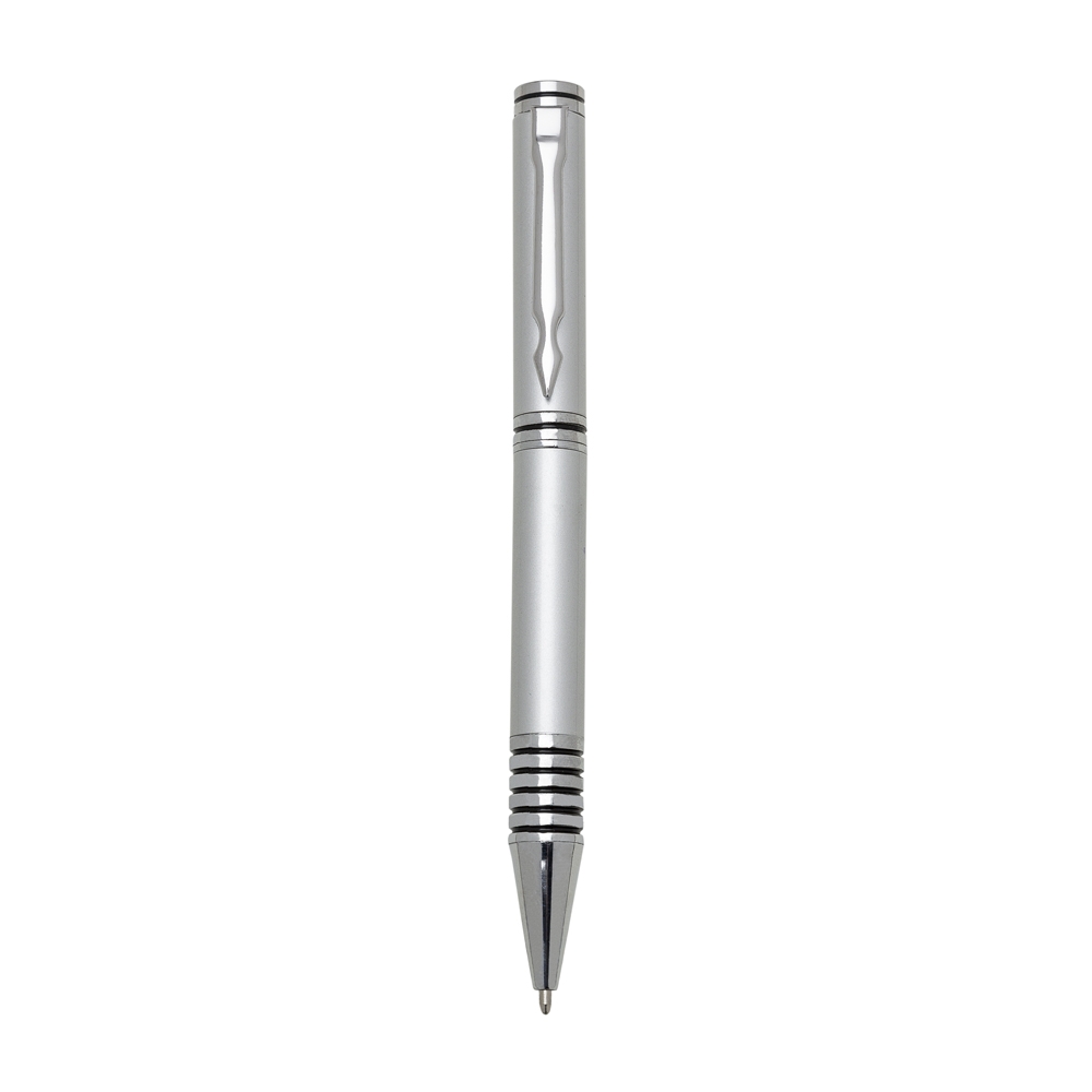Descrição: Caneta metálica com carga esferográfica azul 1.0 mm e acionamento por rotação.