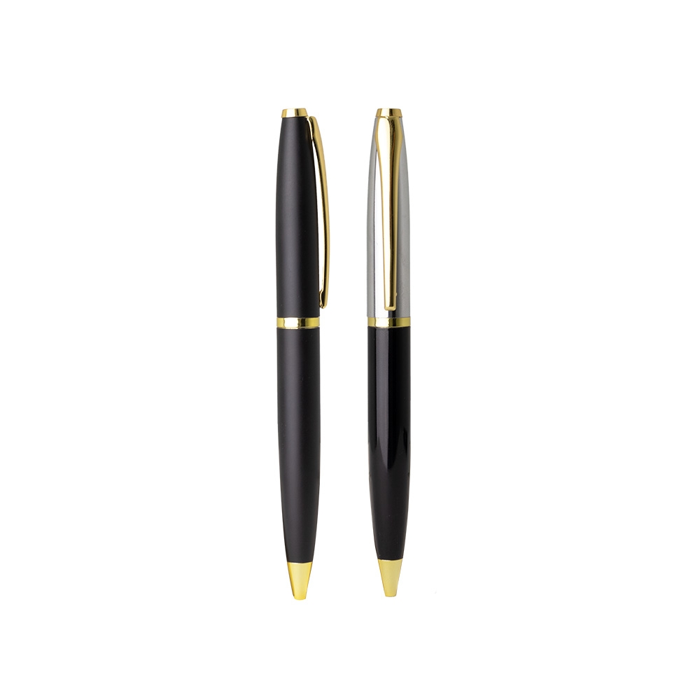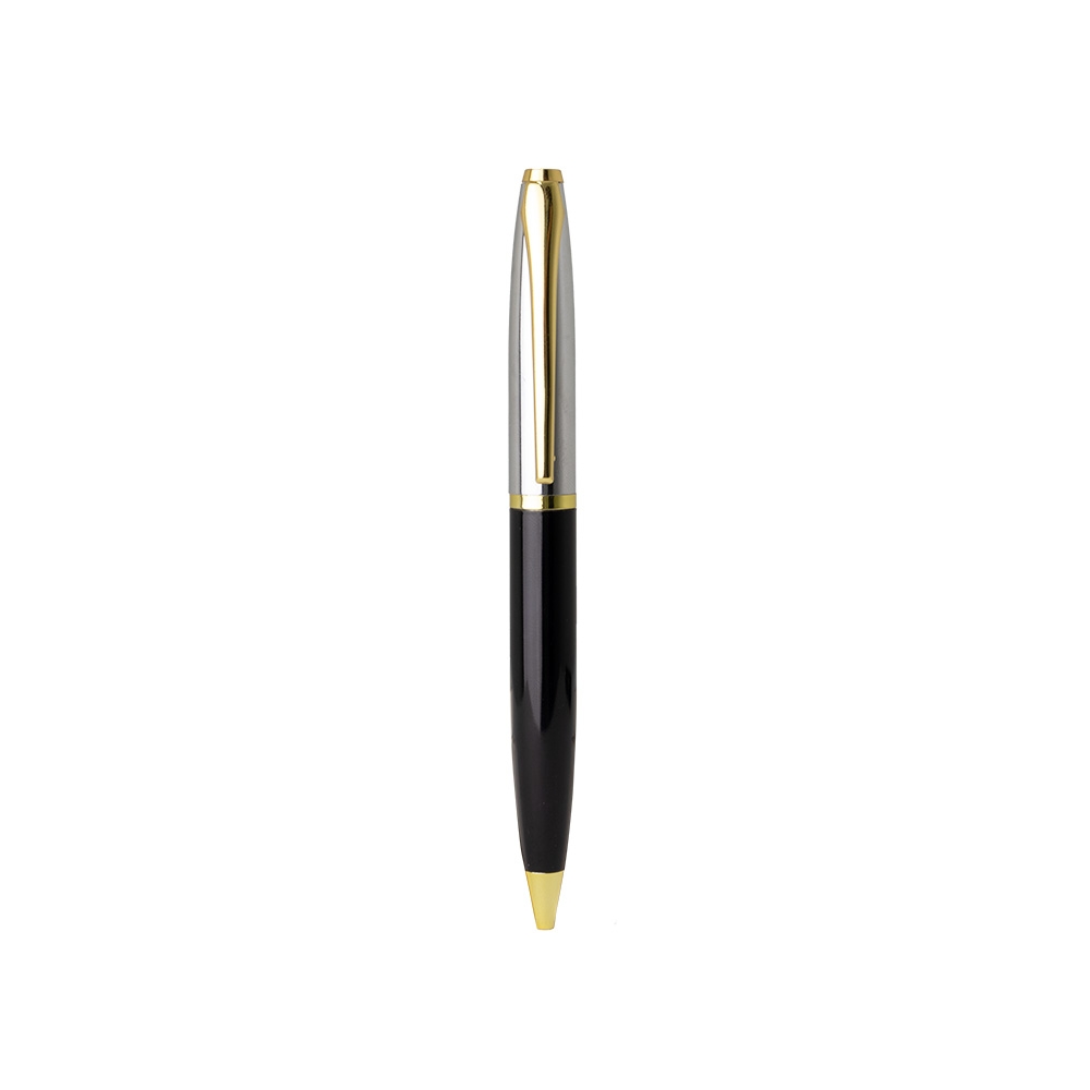 Descrição: Caneta metálica com carga esferográfica azul 1.0mm e acionamento por rotação.