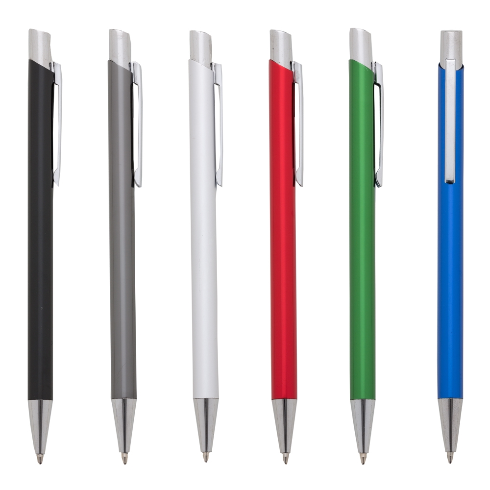 Descrição: Caneta metálica com carga esferográfica azul 1.0 mm e acionamento por clique.