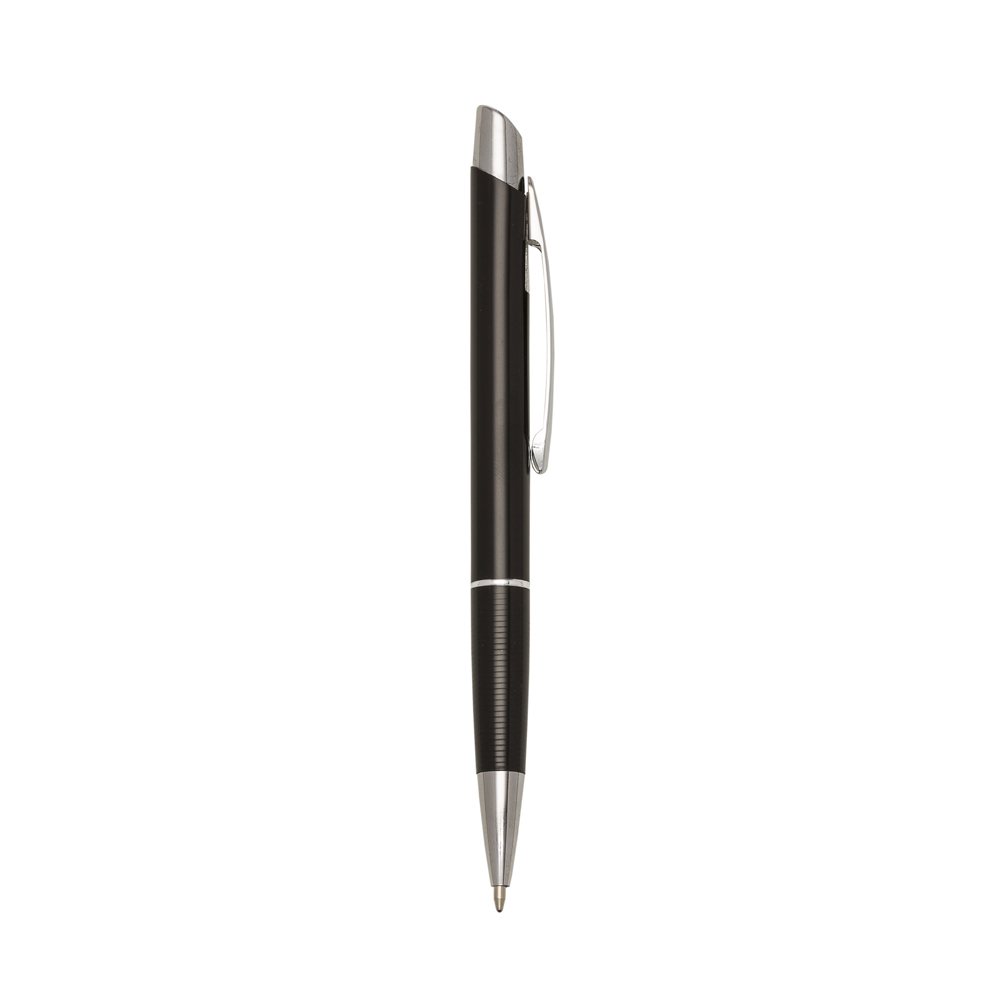 Descrição: Caneta metálica com carga esferográfica azul 1.0 mm e acionamento por clique.