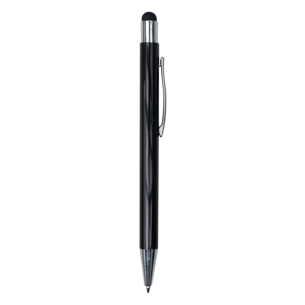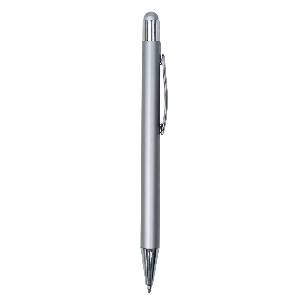 Descrição: Caneta metálica com touch screen, carga esferográfica azul e acionamento por clique.