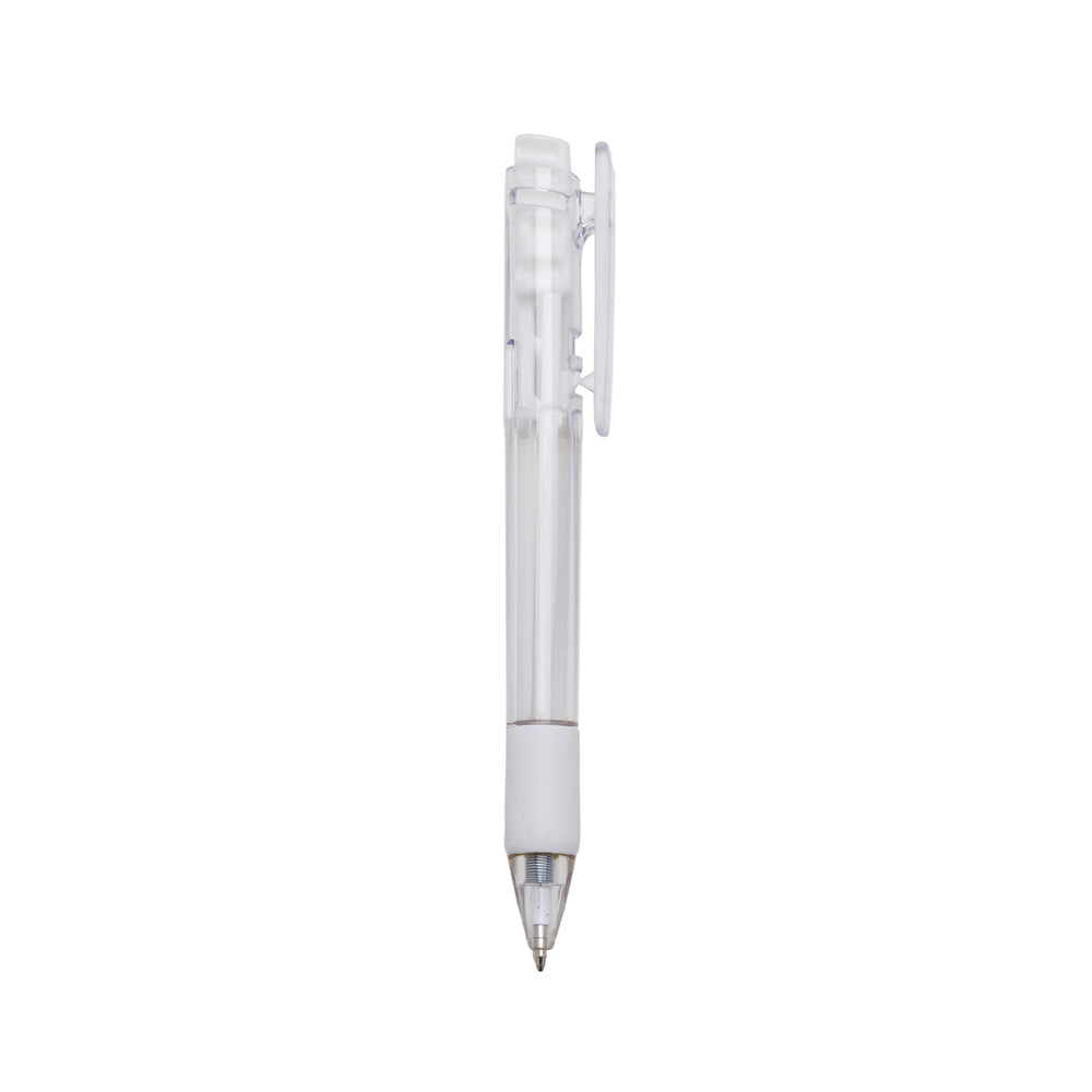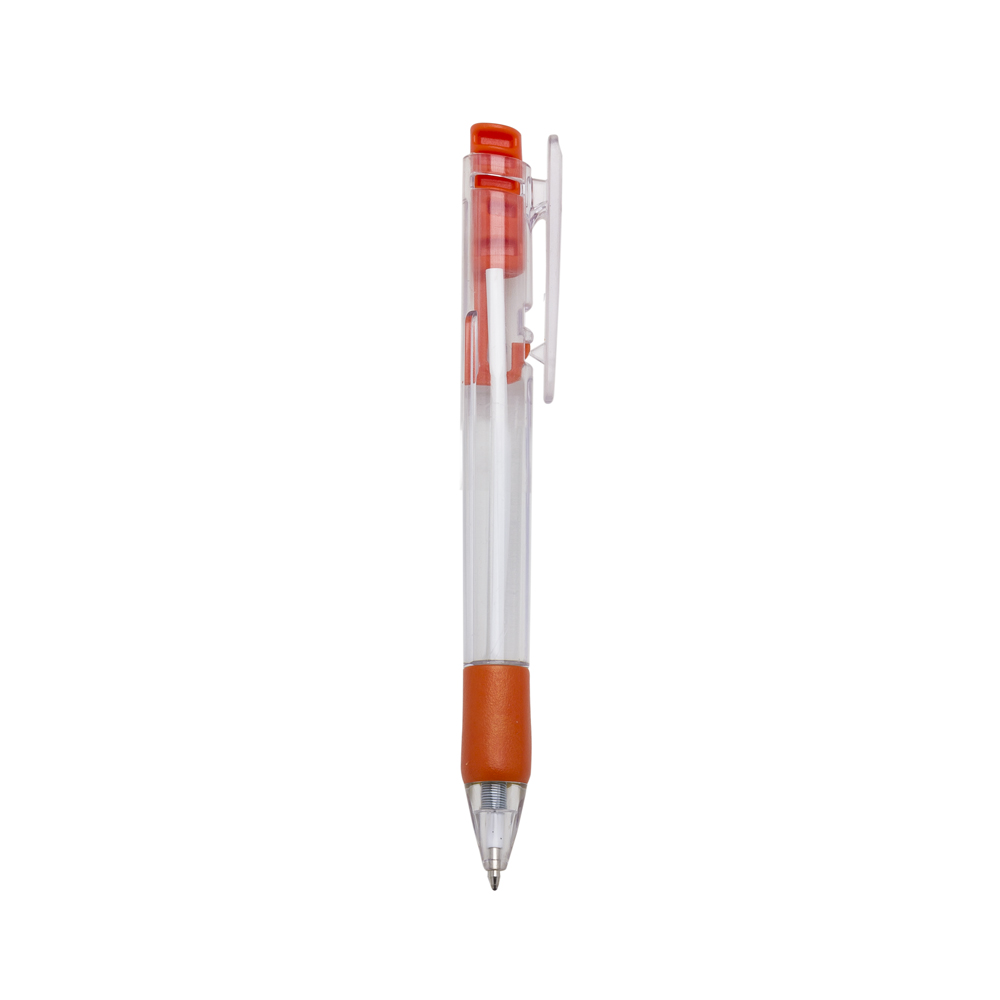 Descrição: Caneta plástica com carga esferográfica azul 1.0 mm e acionamento por clique.