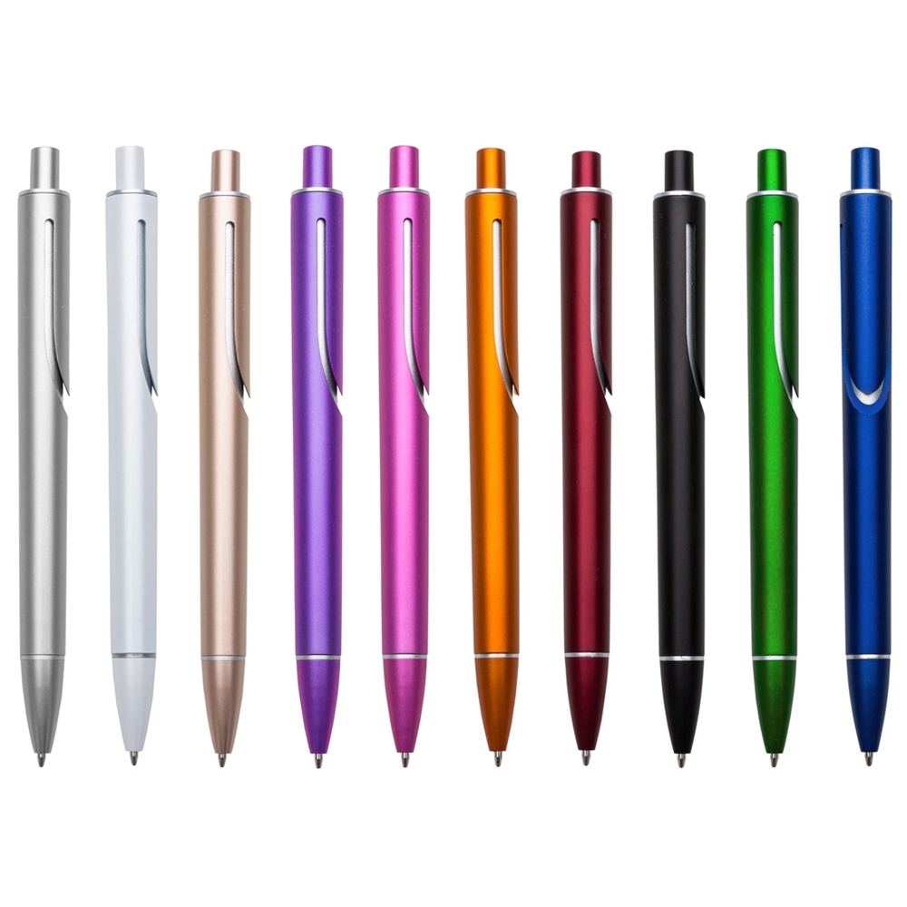 Descrição: Caneta plástica com carga esferográfica azul 1.0 mm e acionamento por clique.