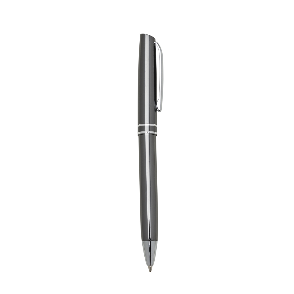 Descrição: Caneta semimetálica, carga esferográfica azul e acionamento por clique.