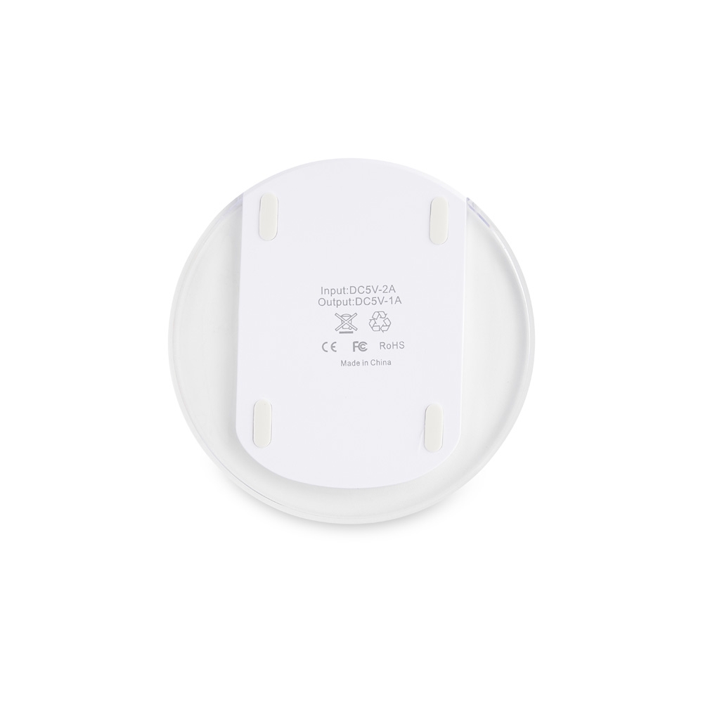 Descrição: Carregador via indução formato disco com indicador de funcionamento em led, feito em plástico ABS. Acompanha cabo USB. OBS.: O CARREGADOR APENAS TRANSFERE CARGA, ELE NÃO POSSUI BATERIA PARA ARMAZENAMENTO (NÃO É UM POWER BANK).