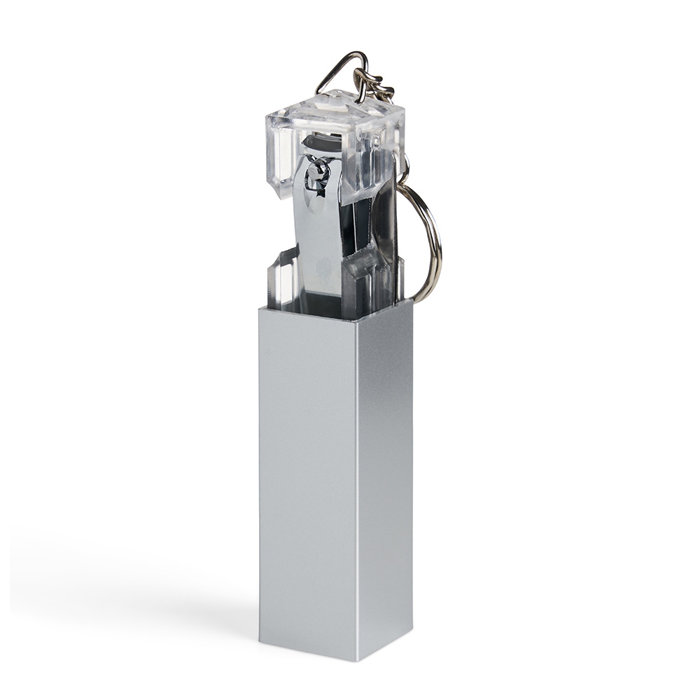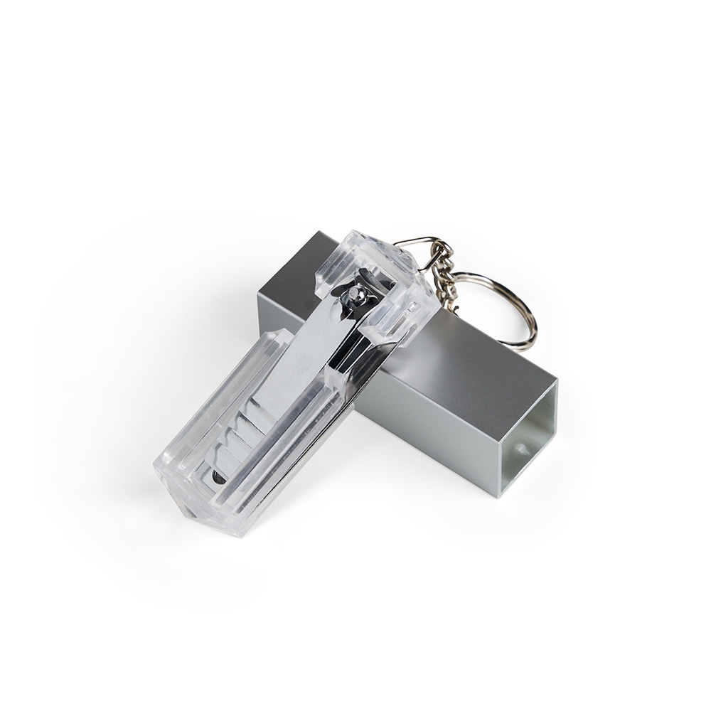 Descrição: Chaveiro kit manicure 4 peças em estojo plástico. Possui lixa, pinça, empurrador de cutícula e cortador de unha preso. Estojo com berço plástico para acomodação das peças.