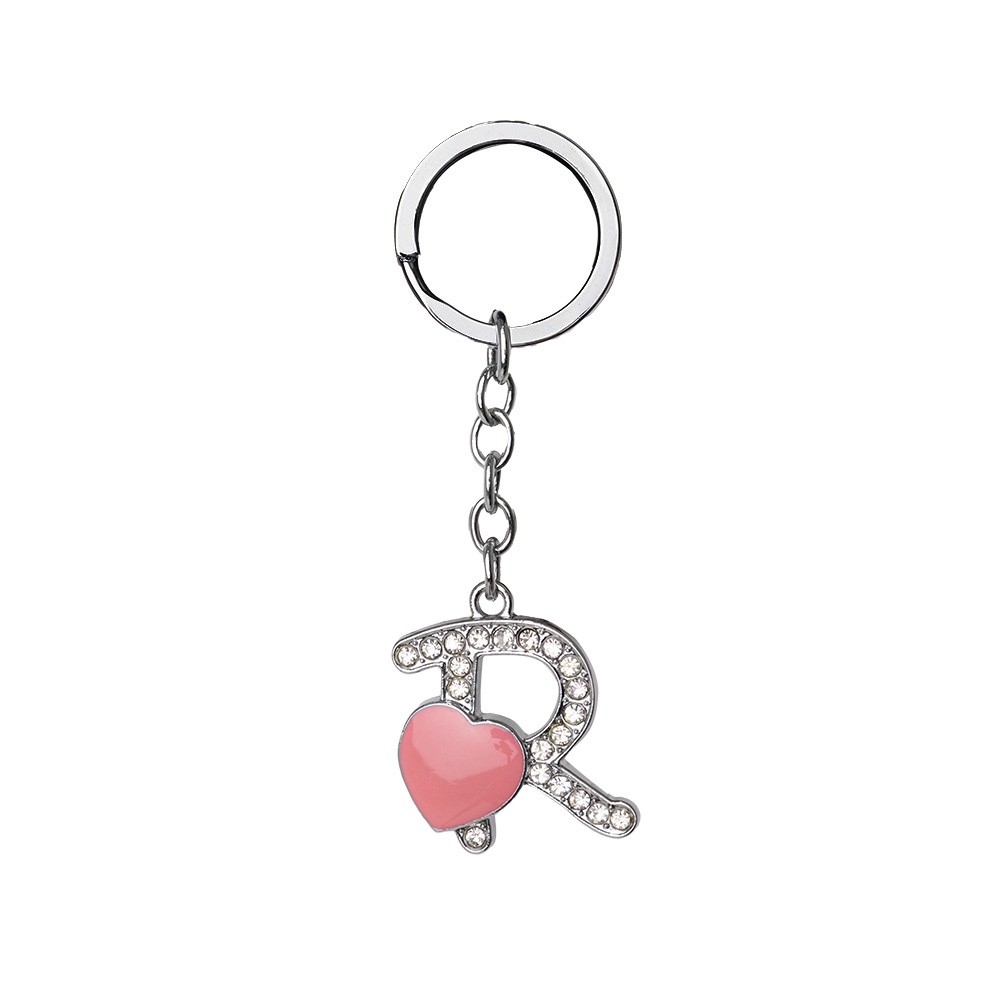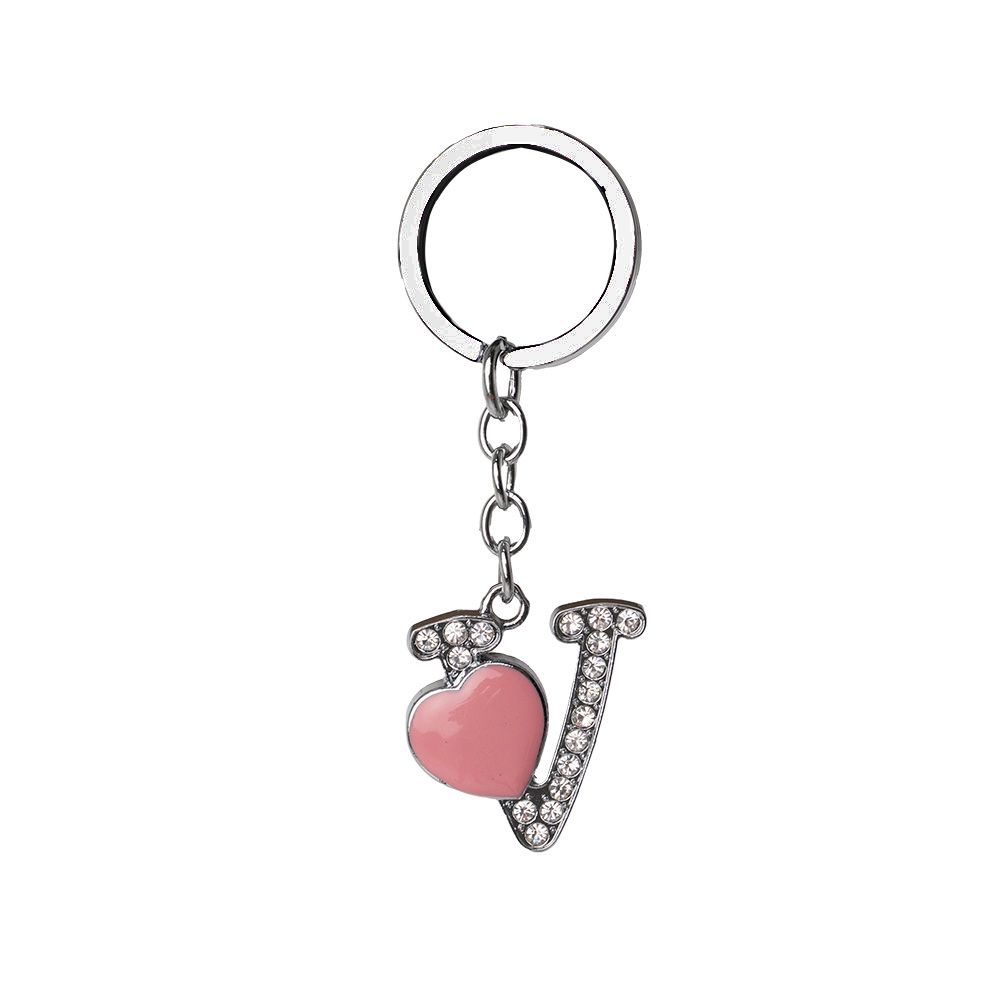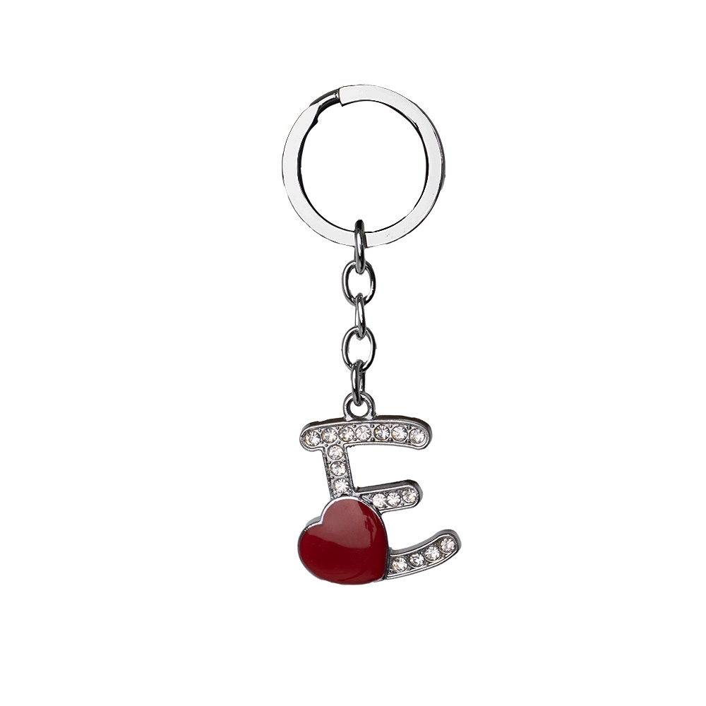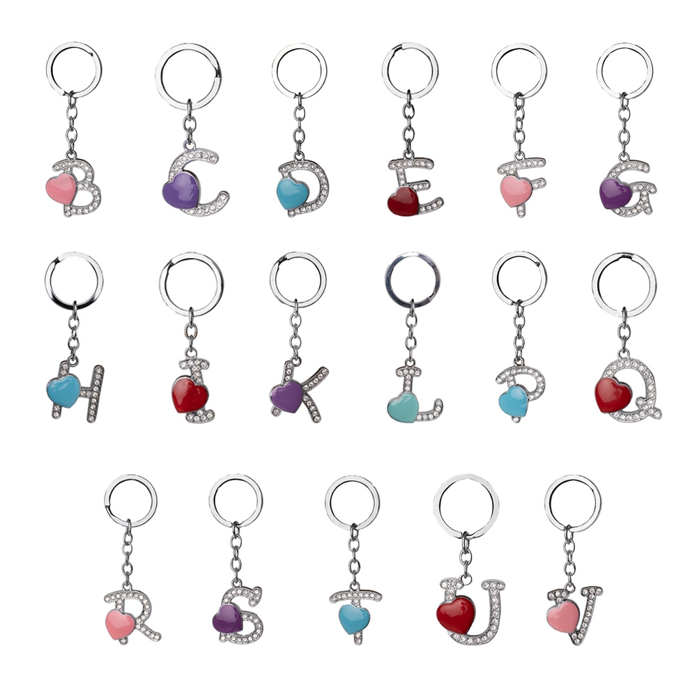 Descrição: Chaveiro de metal, formato de letra, com pedras brilhantes e detalhe em coração.