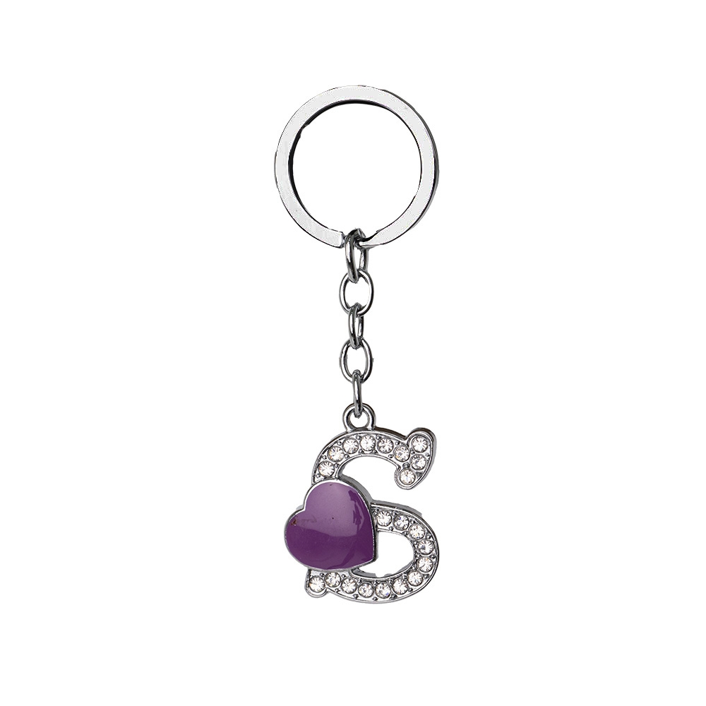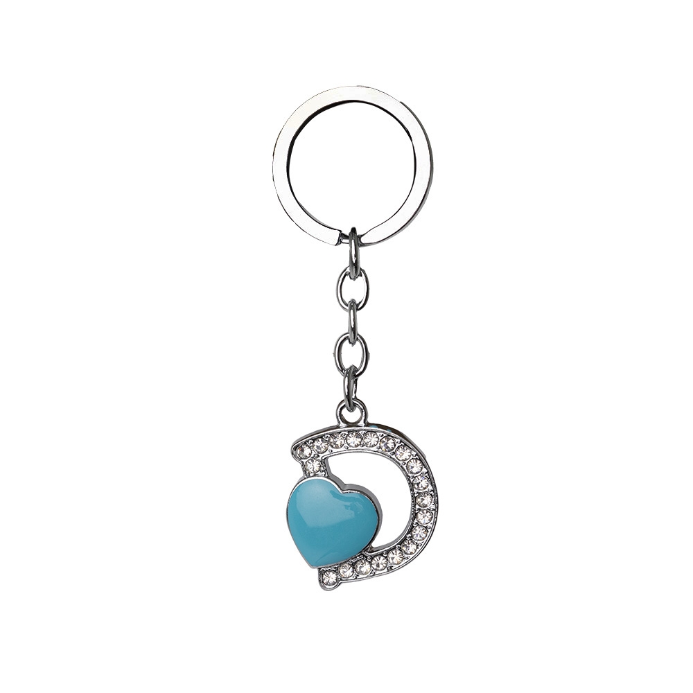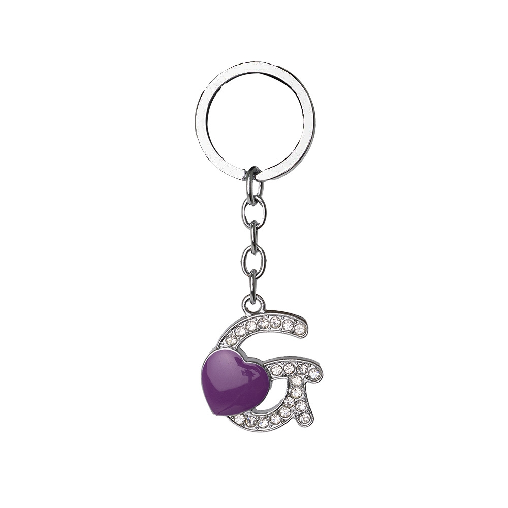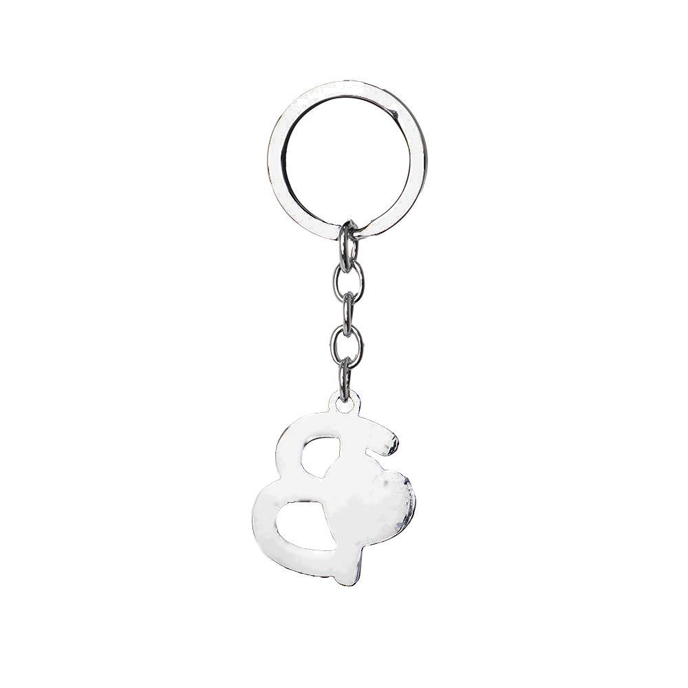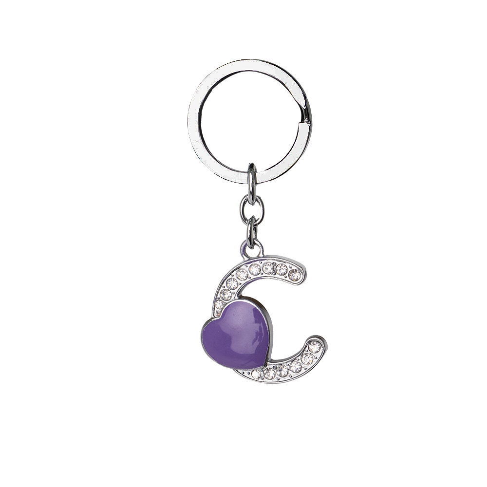 Descrição: Chaveiro de metal, formato de letra, com pedras brilhantes e detalhe em coração.