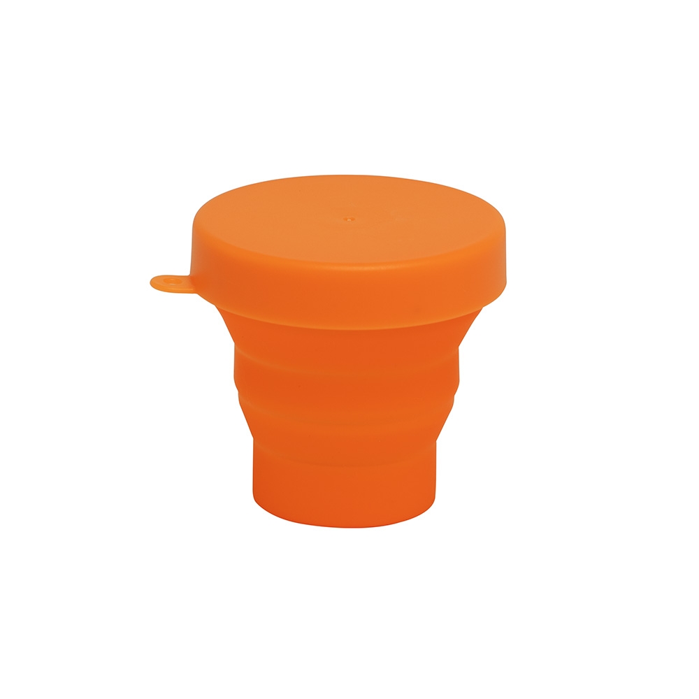 Descrição: Copo retrátil em silicone livre de BPA com capacidade de 150ml. Acompanha tampa em plástico de encaixe com acesso para chaveiro.