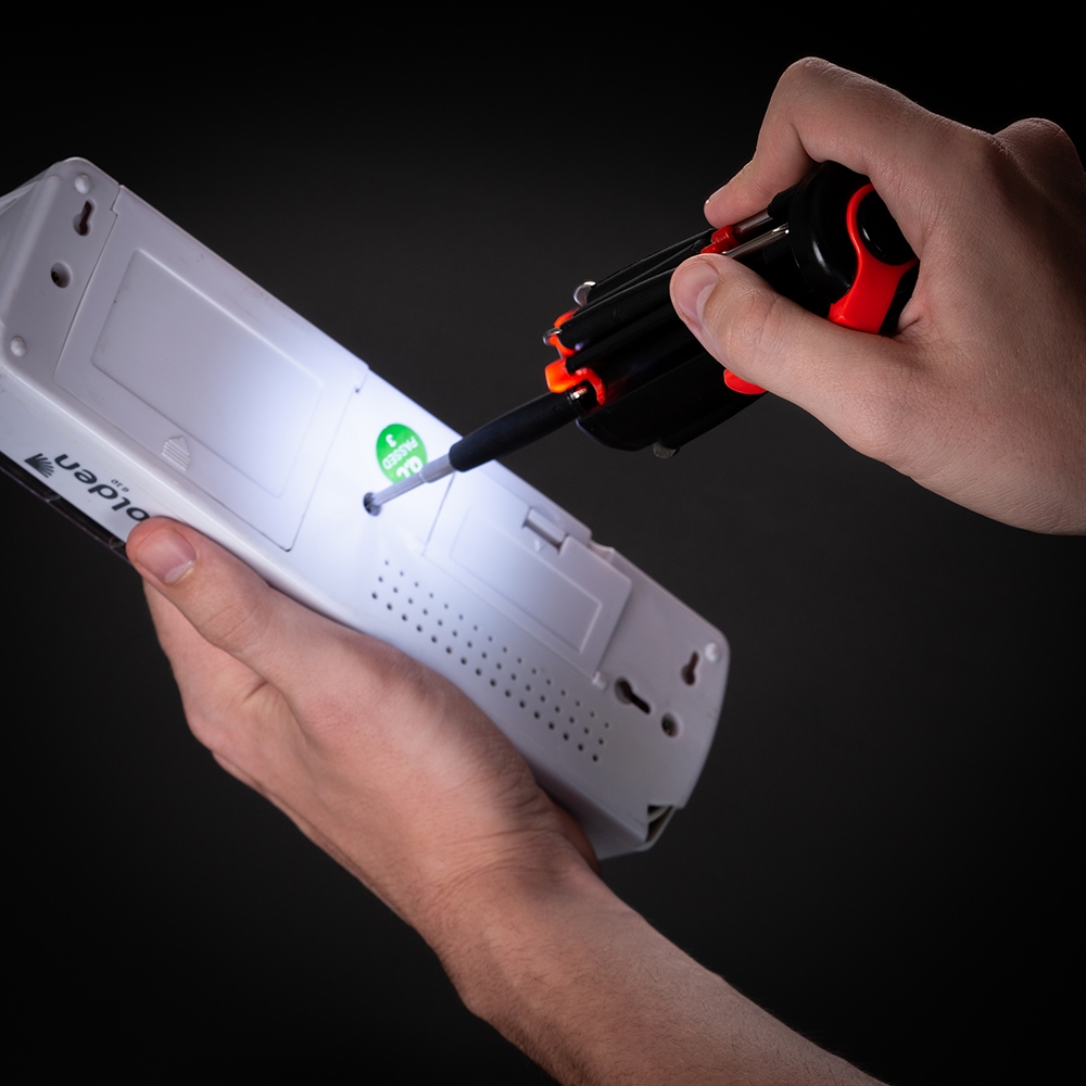 Descrição: Kit ferramenta retrátil com 7 chaves e lanterna de 6 Leds. Material plástico, possui 3 chaves Philips; 3 chaves de fenda; chave de ponta dupla sendo um mini Philips e uma mini Fenda em cada extremidade, basta desrosquear as tampas para visualizá-las. Clip vermelho com setas explicativas para abertura do compartimento de pilhas, pressione a localização da seta superior e empurre ao mesmo tempo a parte inferior para remoção, necessita de 3 pilhas AAA(não acompanha).