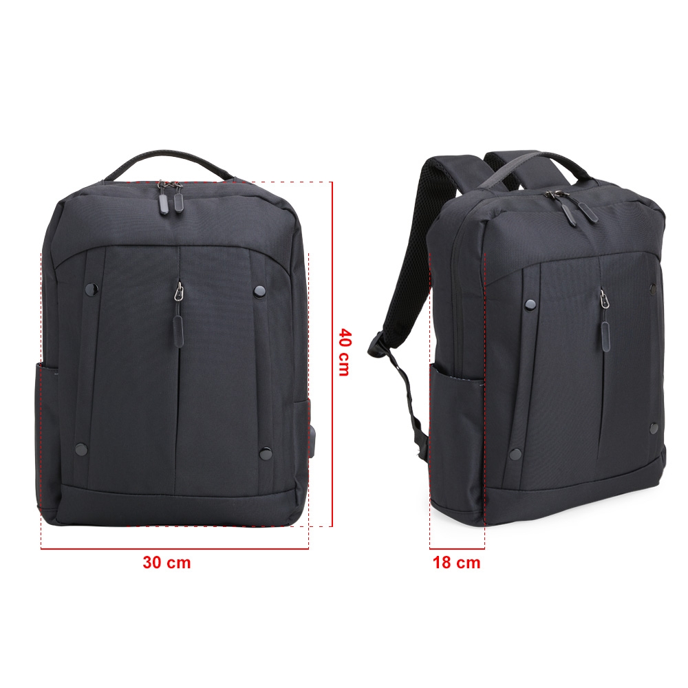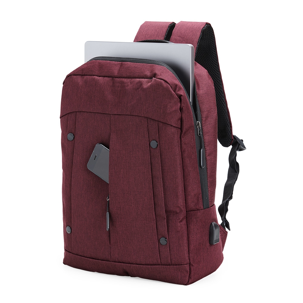 Descrição: Mochila de nylon 20 Litros com dois compartimentos, sendo o principal com bolso para notebook 15,6. Com divisórias internas para acessórios, a mochila possui bolso lateral, suporte externo USB e alça para engate em malas de viagem.