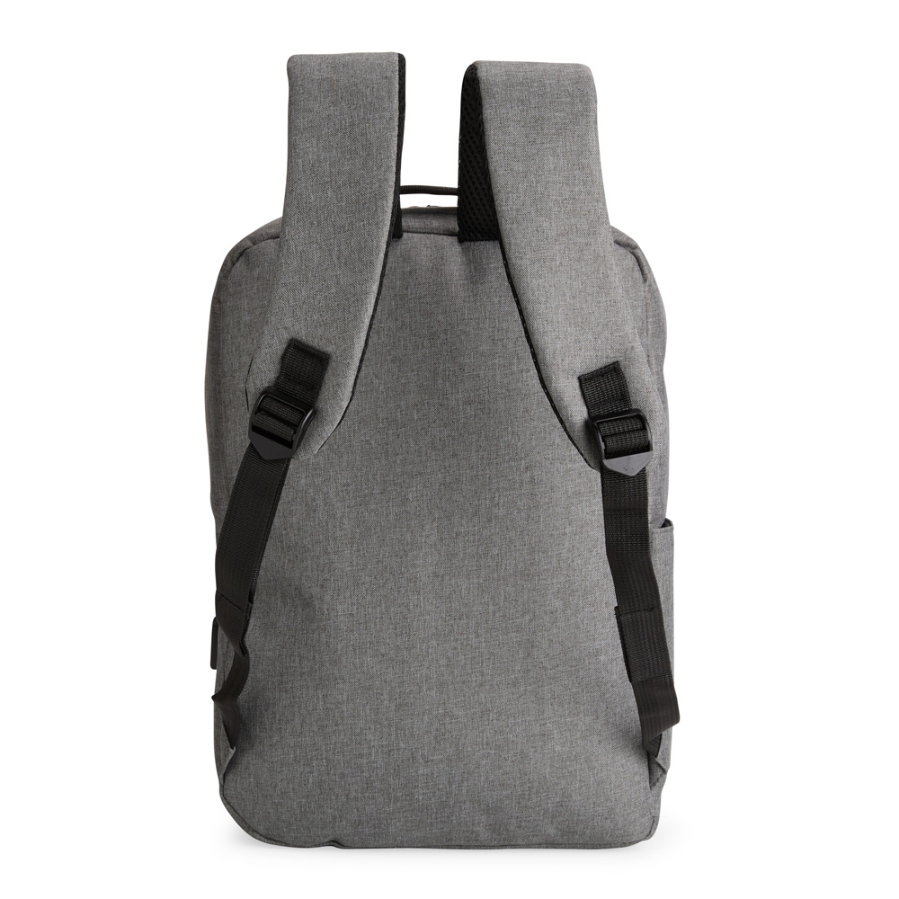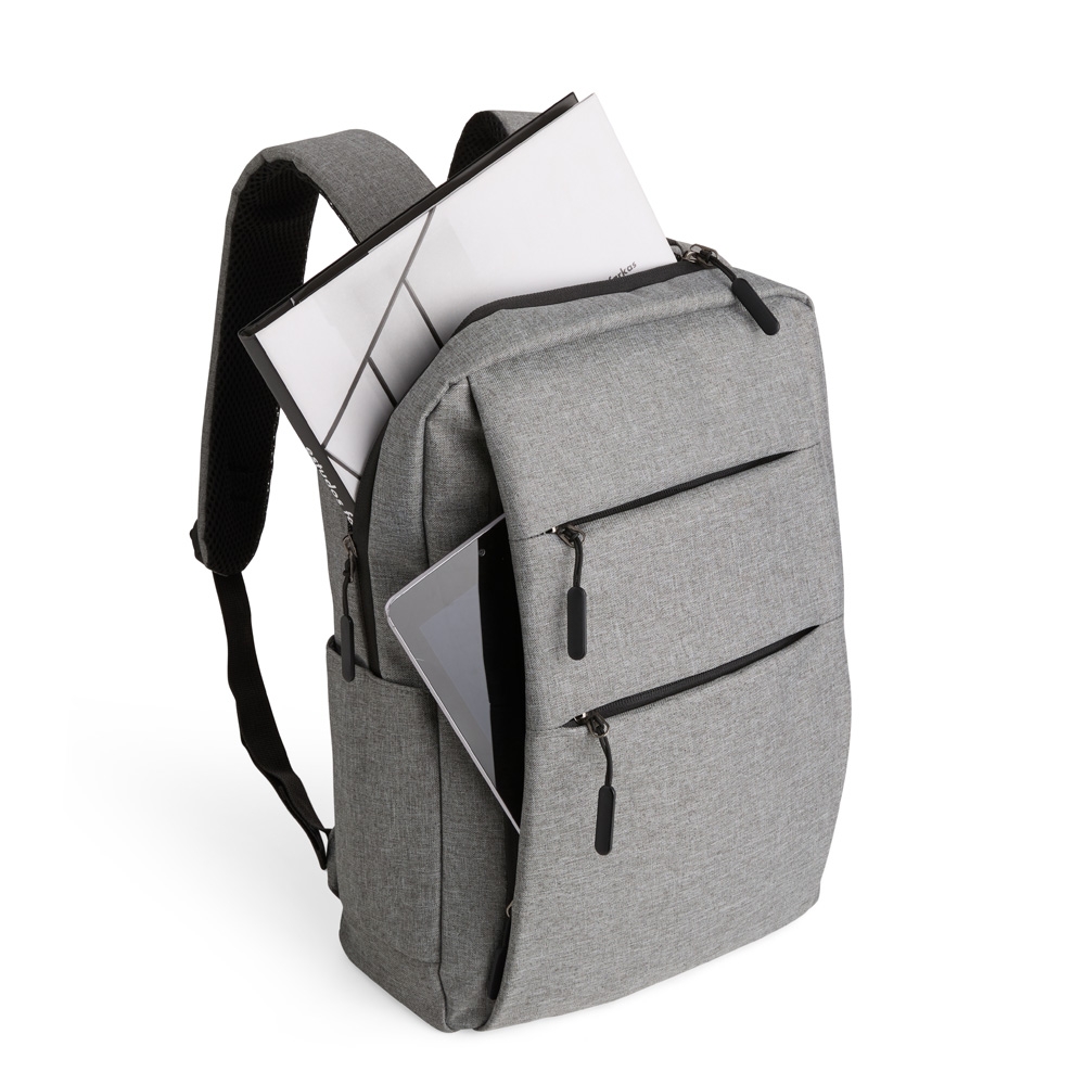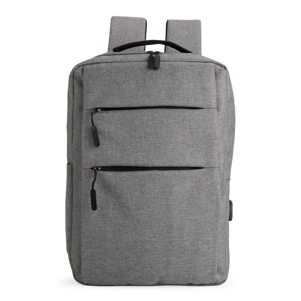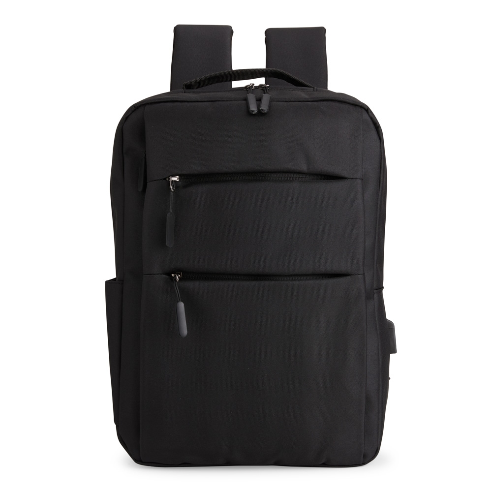 Descrição: Mochila confeccionada em nylon Oxford impermeável, com fechamento em zíper, puxadores com detalhes em nylon e plástico e capacidade de até 14 litros. Possui compartimento interno principal com bolsos de tamanhos variados e divisória para notebooks de ate 15,6 polegadas. Possui três compartimentos externos, um deles com abertura lateral. Dispõe também de bolso lateral, porta USB, alça de mão em poliéster 210D e alças para as costas em tecido respirável.