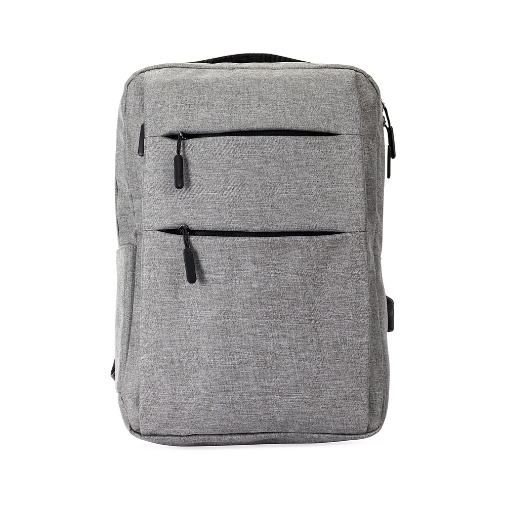 Descrição: Mochila confeccionada em nylon Oxford impermeável, com fechamento em zíper, puxadores com detalhes em nylon e plástico e capacidade de até 14 litros. Possui compartimento interno principal com bolsos de tamanhos variados e divisória para notebooks de ate 15,6 polegadas. Possui três compartimentos externos, um deles com abertura lateral. Dispõe também de bolso lateral, porta USB, alça de mão em poliéster 210D e alças para as costas em tecido respirável.