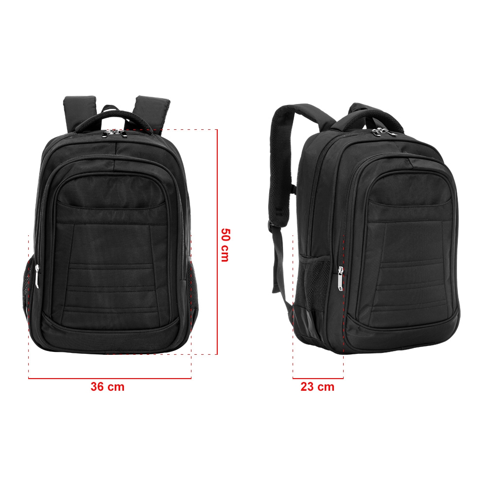 Descrição: Mochila de poliéster 27 litros com três compartimentos, sendo o principal com bolso para notebook 15,6. Com divisórias internas para acessórios, a mochila possui bolsos laterais em malha, alça de compensação, duas alças de mãos e área costada com revestimento espumado.