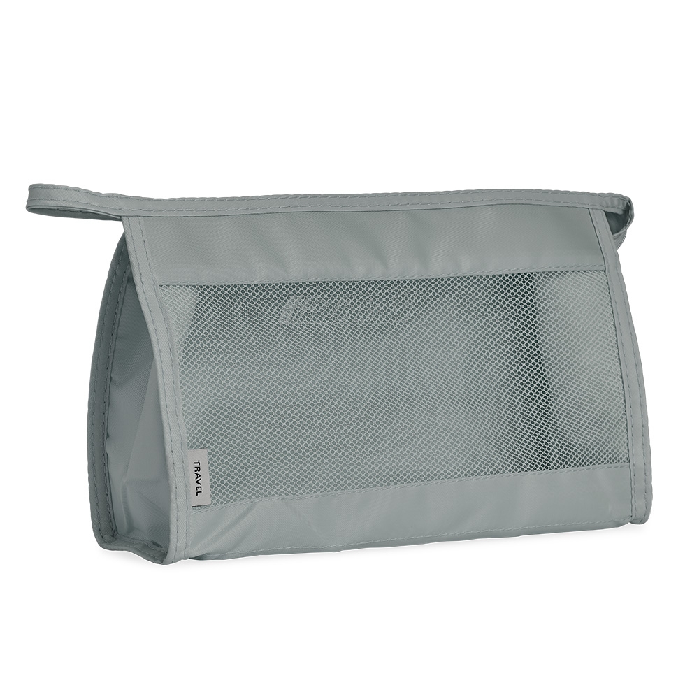 Descrição: Nécessaire respirável de poliéster com pequeno bolso resistente à água.