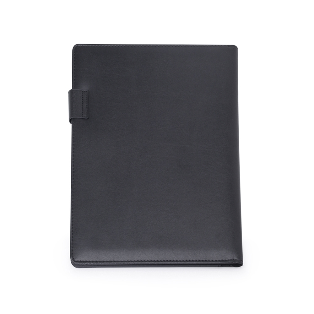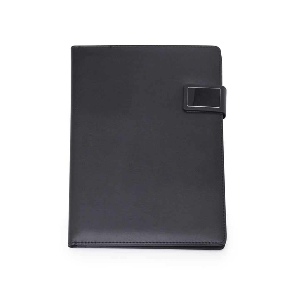 Descrição: Pasta convenção de couro sintético com trava de imã lateral, possui uma placa de metal na trava ideal para personalização. Possui “bolso” para arquivar documentos, porta celular com visor fosco, porta cartões com divisórias e visor além de um bolso atrás, suporte elástico para caneta(não acompanha) e bloco A4 com aproximadamente 20 folhas brancas pautadas de verso liso.