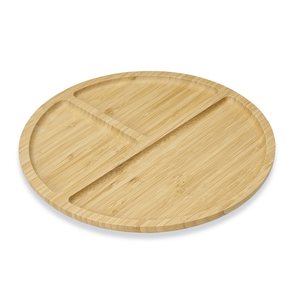 Descrição: Petisqueira de bambu grande com 3 divisórias.