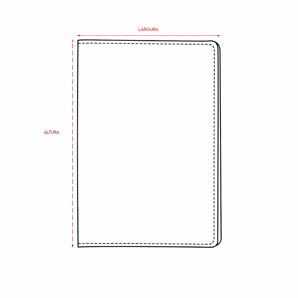 Medidas aproximadas para gravação (CxL): 12 cm x 8 cm (capa) – 12 cm x 5 cm (bolso interno)
