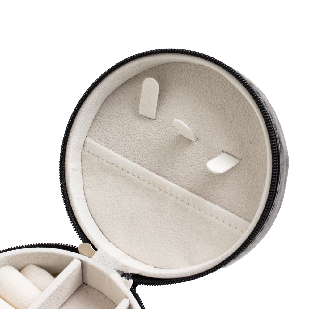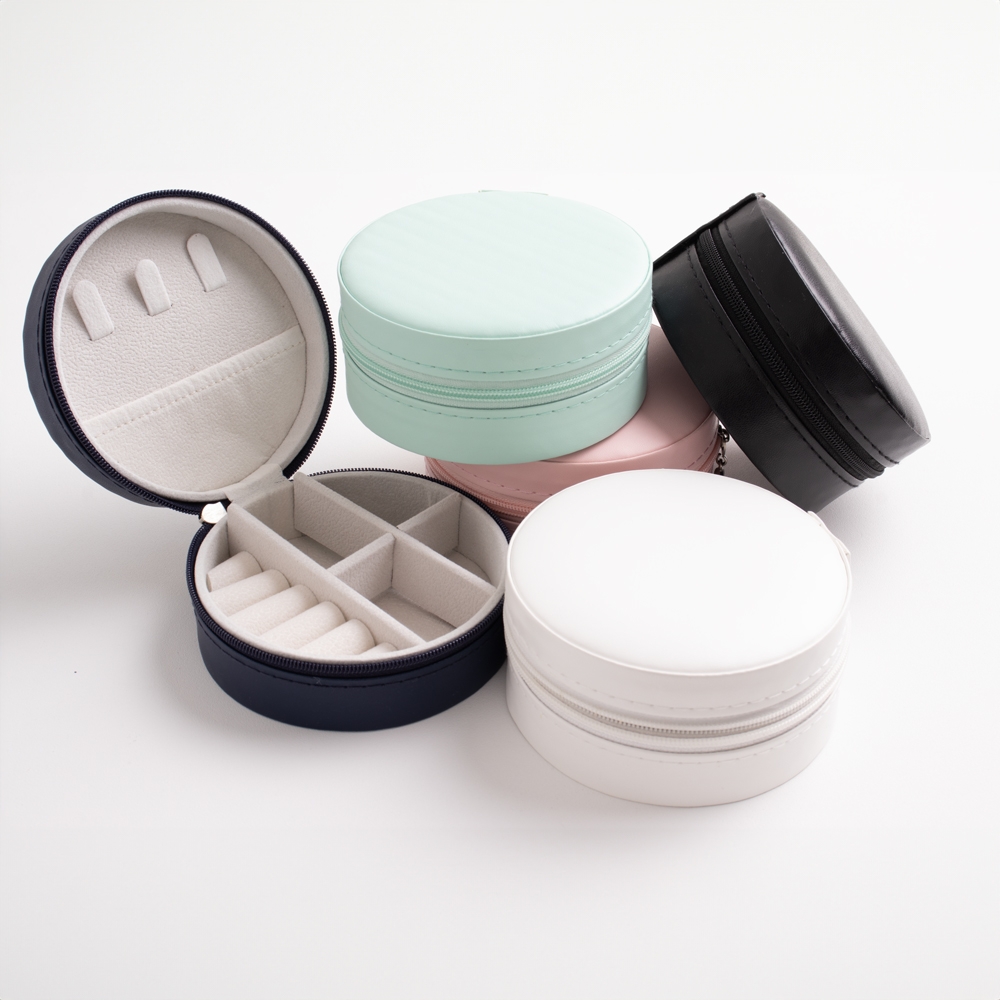 Descrição: Porta-joias de couro sintético com revestimento aveludado. Possui compartimentos internos para anéis, brincos, pulseiras e colares.