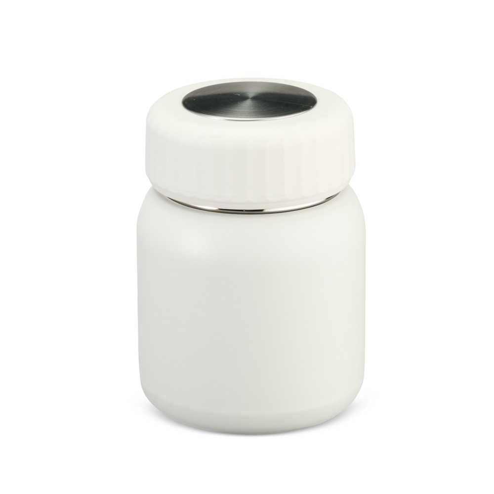Descrição: Pote térmico feito em inox com pintura eletrostática e capacidade de até 500ml. Apresenta estrutura de parede dupla e vedação a vácuo, ideal para conservar a temperatura de alimentos por mais tempo. Conta ainda com de tampa rosqueável em inox e base emborrachada antiderrapante.