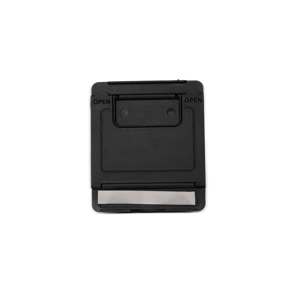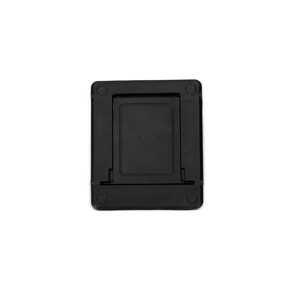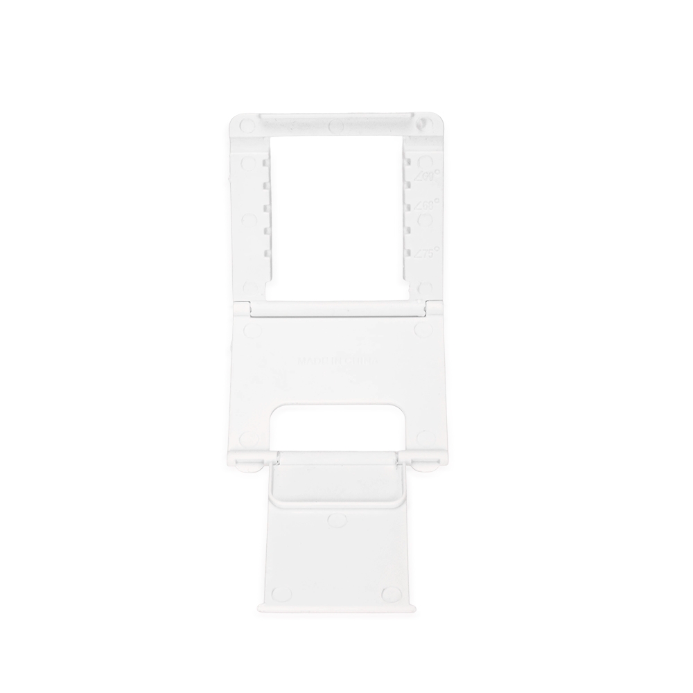 Descrição: Suporte para celular compacto feito em plástico. Ideal para superfícies planas, possui ajuste de inclinação de até 75 graus. Conta também com almofada emborrachada antiderrapante para oferecer um apoio mais estável ao aparelho durante o uso.