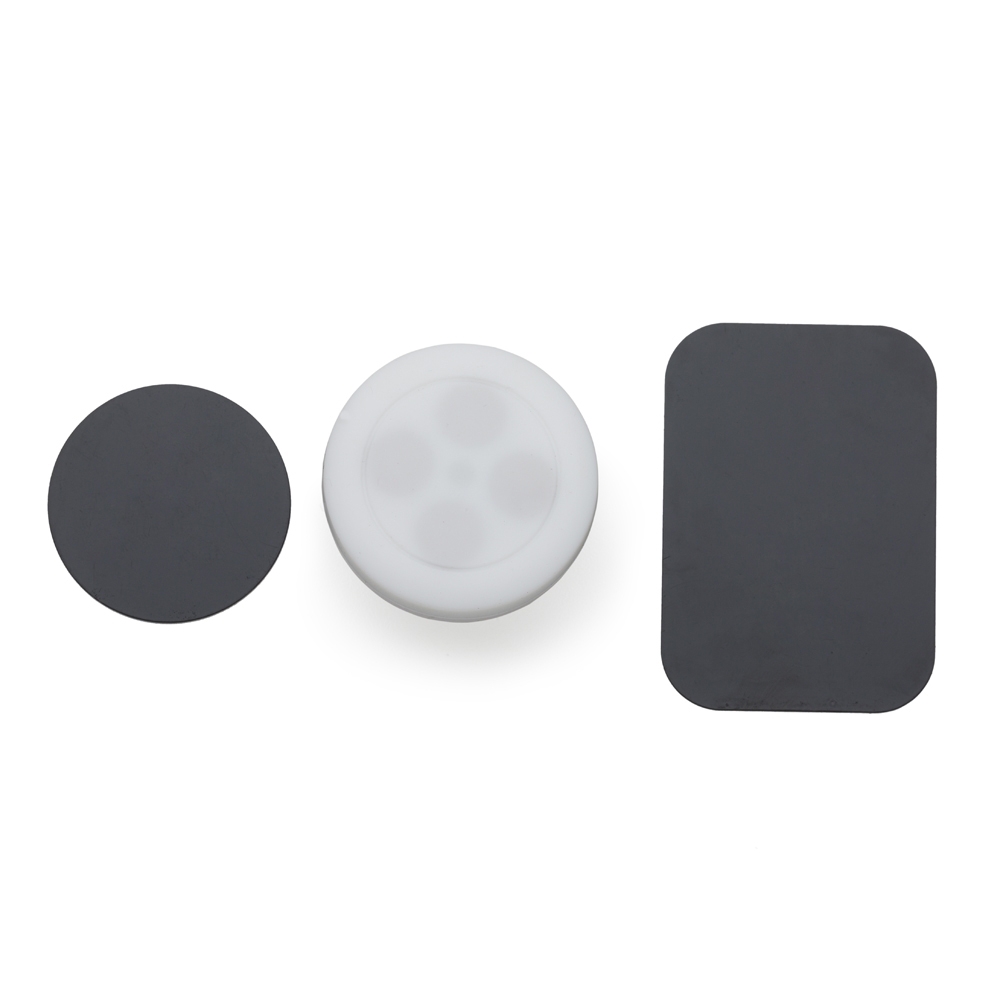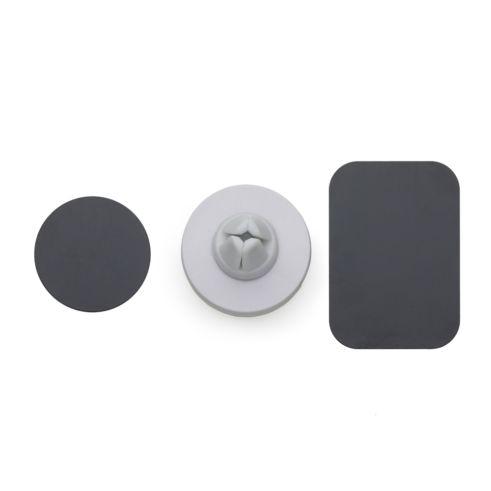 Descrição: Suporte veicular magnético com quatro imãs de alta imantação e garra de encaixe. Acompanha duas fichas metálicas.