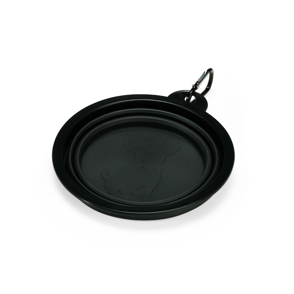 Descrição: Tigela retrátil para pets feita em silicone com borda plástica equipada com encaixe para mosquetão e capacidade de até 350ml. Acompanha mosquetão metálico para facilitar o transporte.